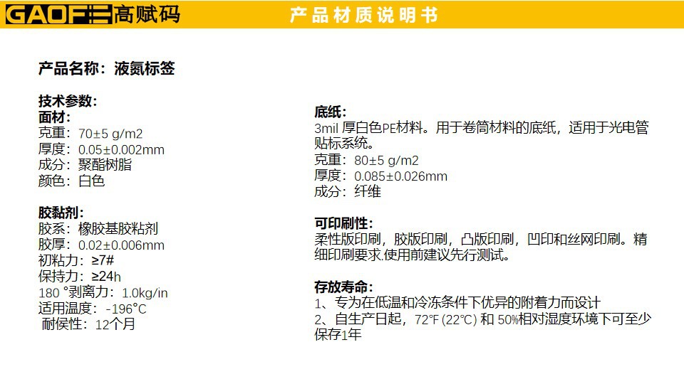 液氮標簽、實驗室標簽、-196低溫標簽-高賦碼