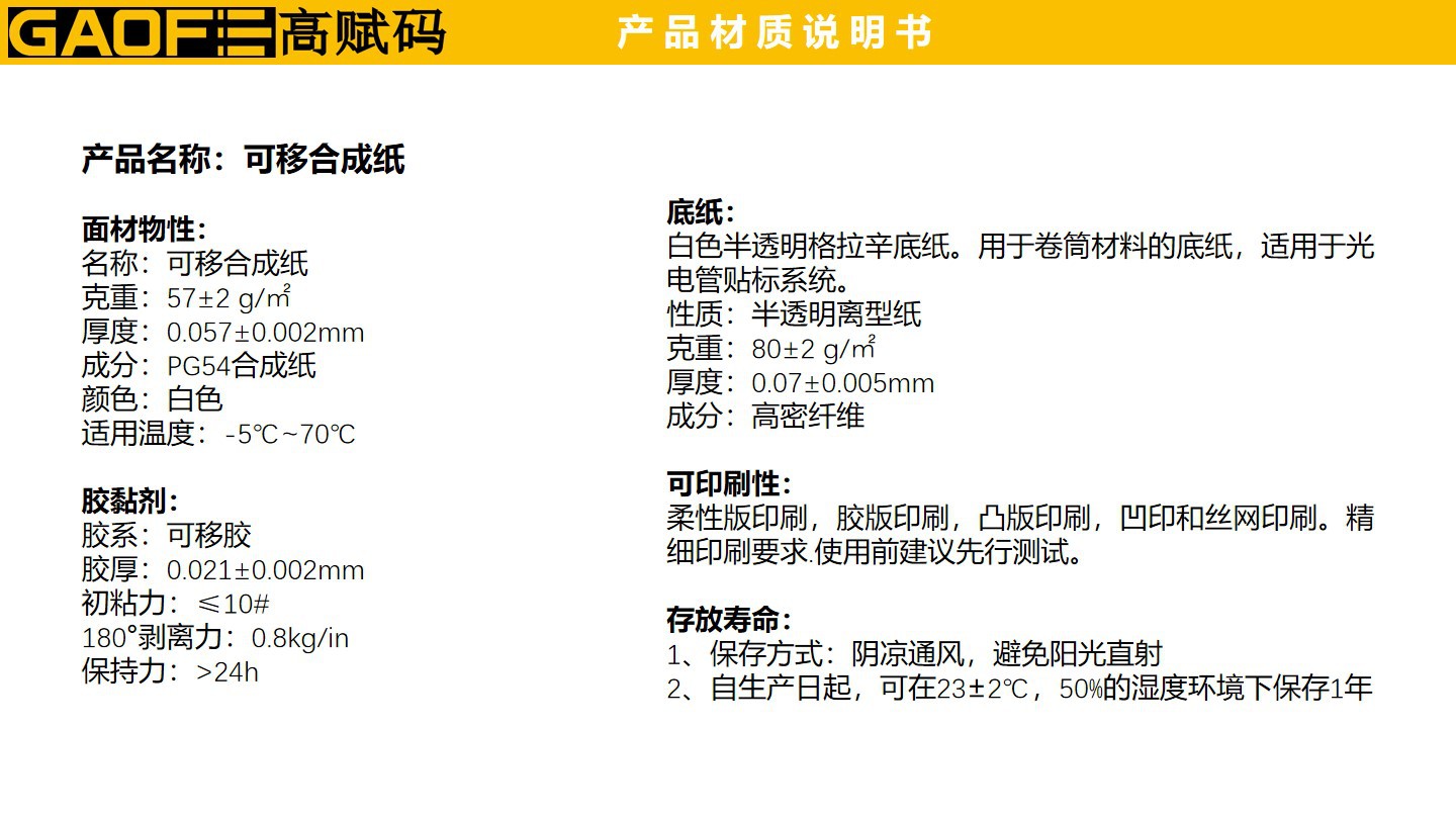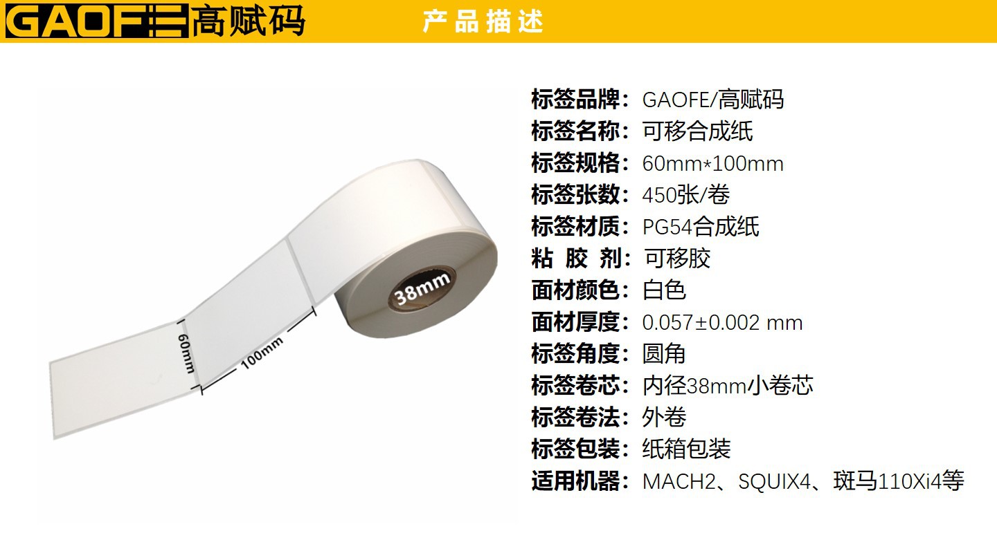 可移合成紙 60mm*100mm 防水防油標簽 可二次使用標簽 高賦碼