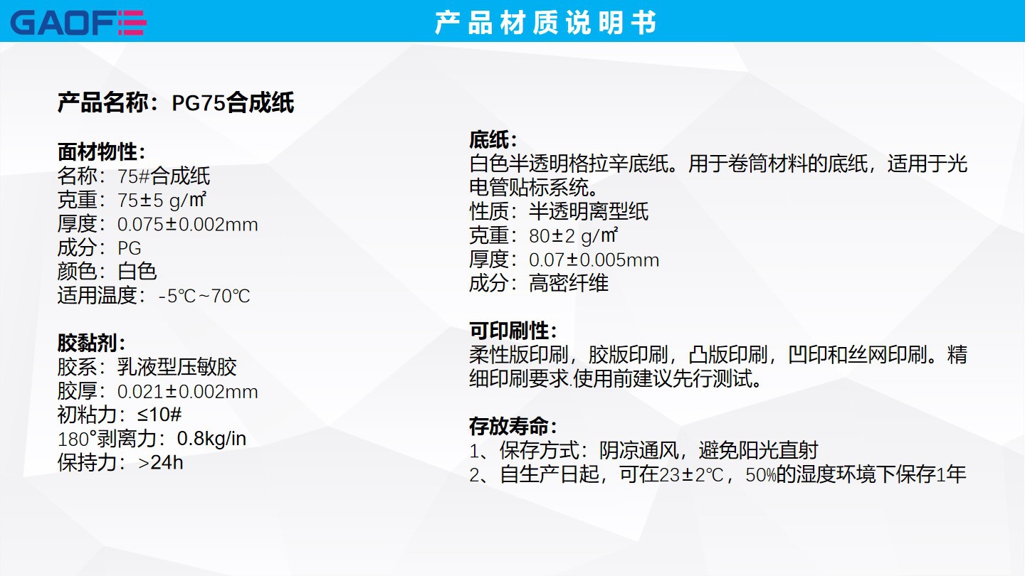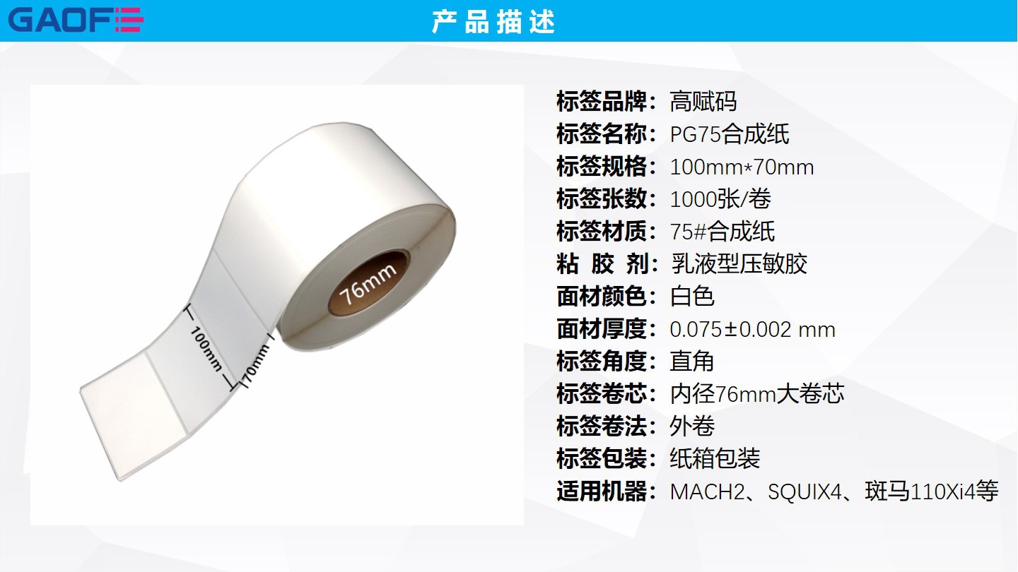 75番合成紙 100mm*70mm 外箱貼紙 PP標簽 防水防油標簽紙-高賦碼