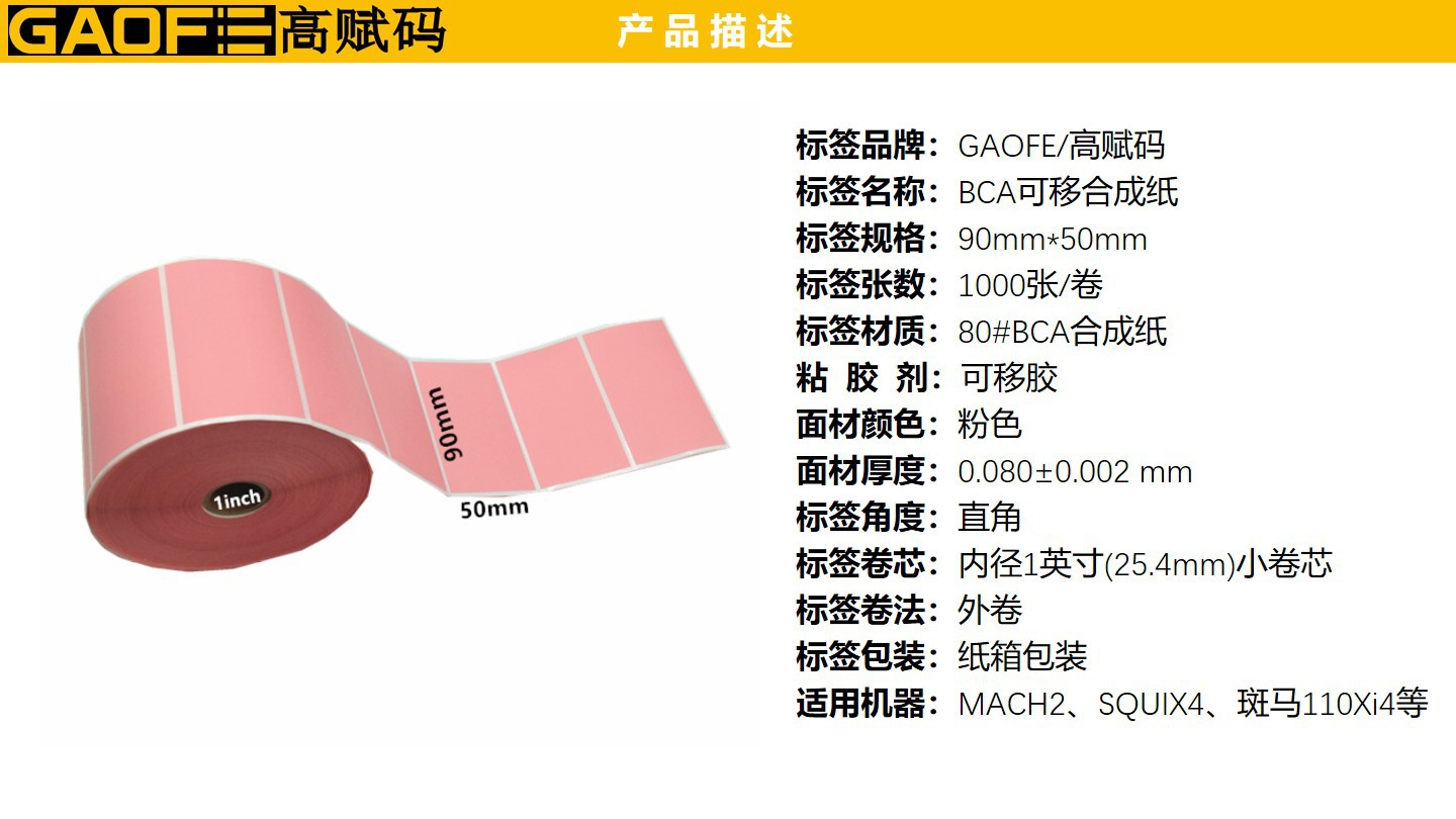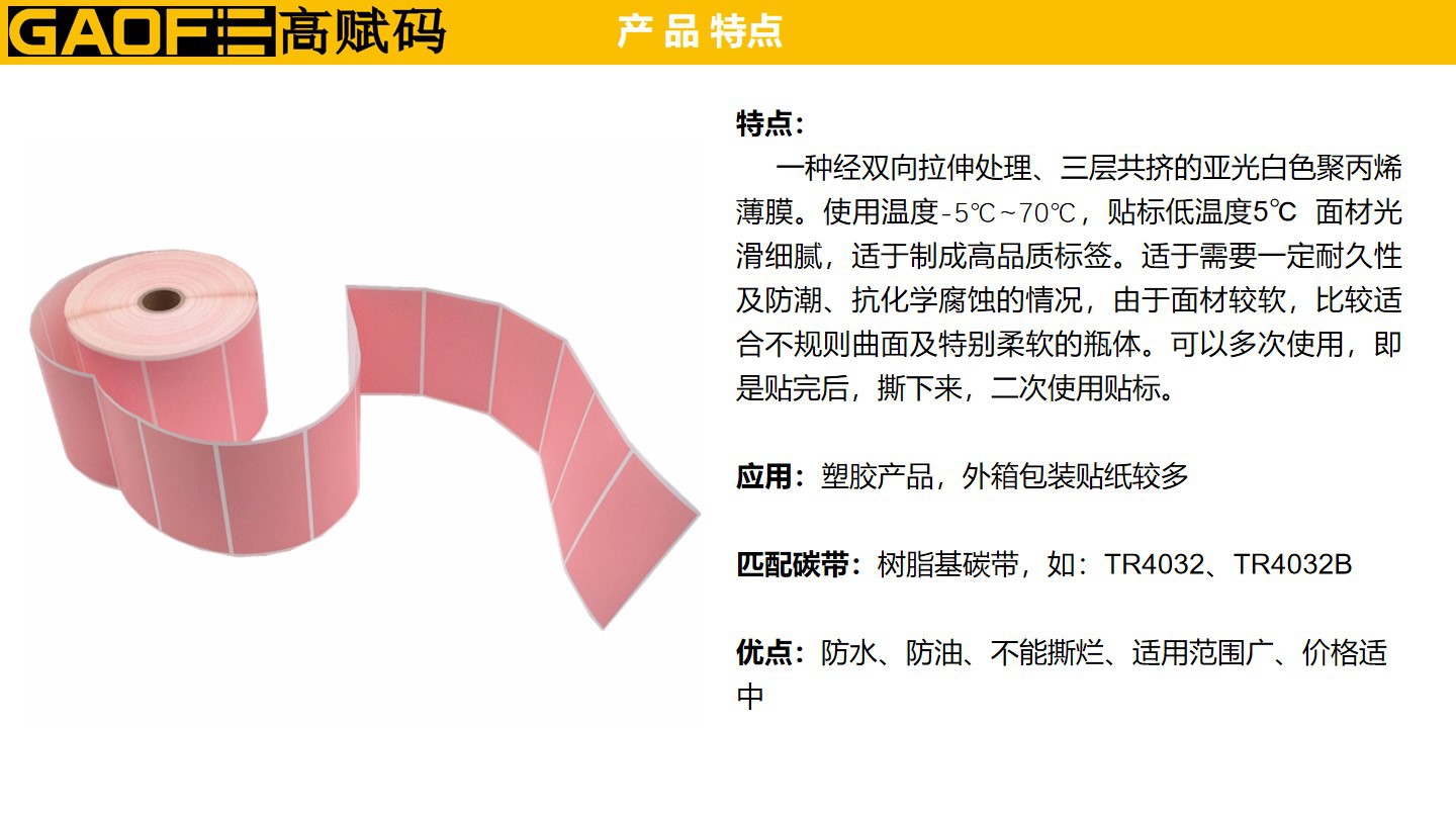 彩色標簽紙 粉色可移合成紙90mm*50mm PP標簽紙 可二次使用-高賦碼