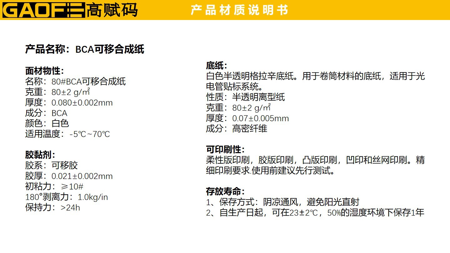 白色半透明格拉辛底紙。用于卷筒材料的底紙,適用于光電管貼標系統。