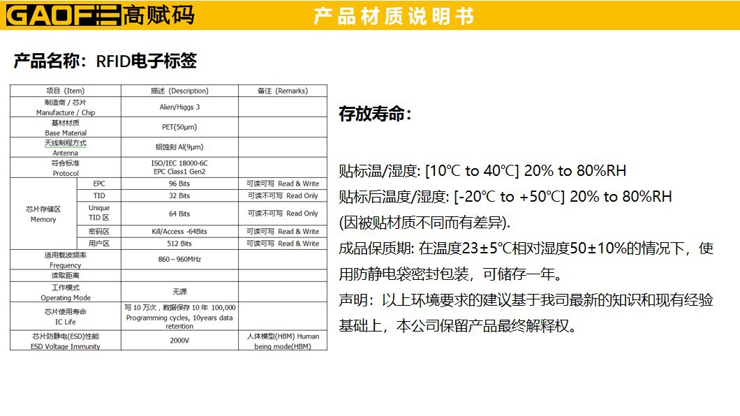 RFID標簽 73MMx20MM 電子標簽 高賦碼