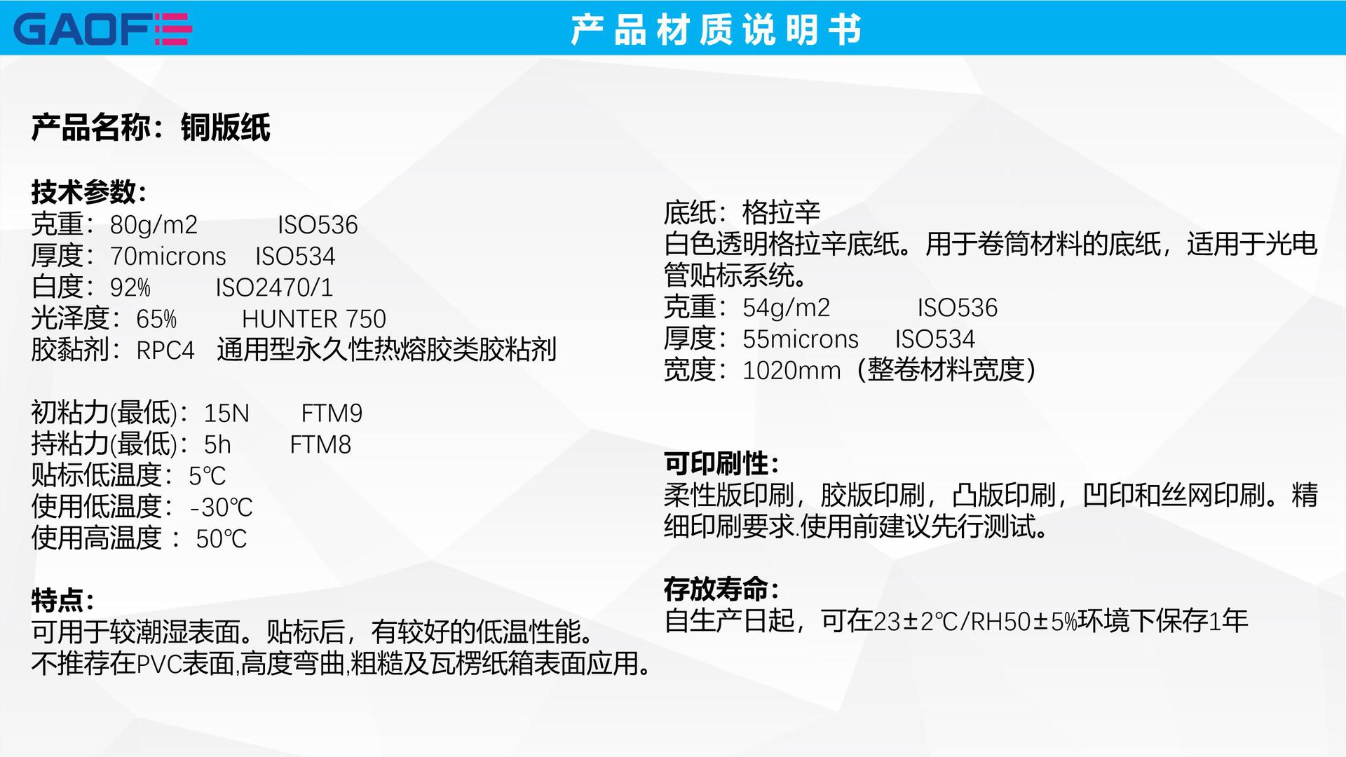 厚度:0.072mm±10% ISO534