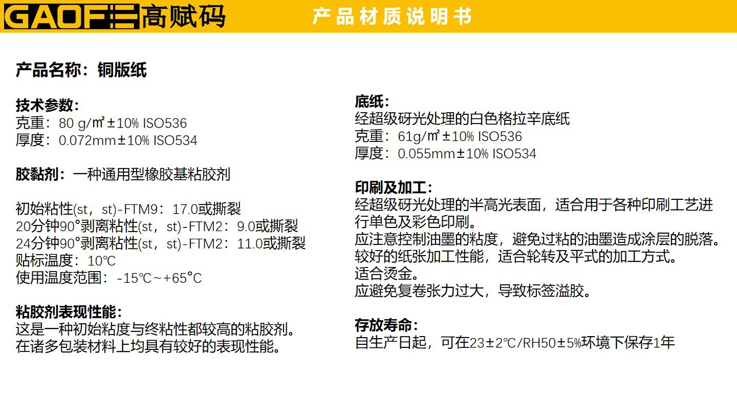 印刷及加工: 經超級砑光處理的半高光表面,非常適合用于各種印刷工藝進行單色及彩色印刷。