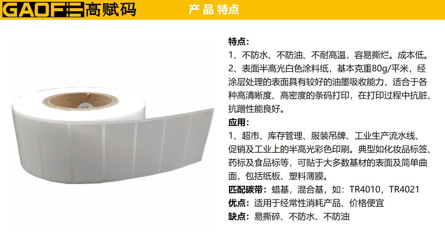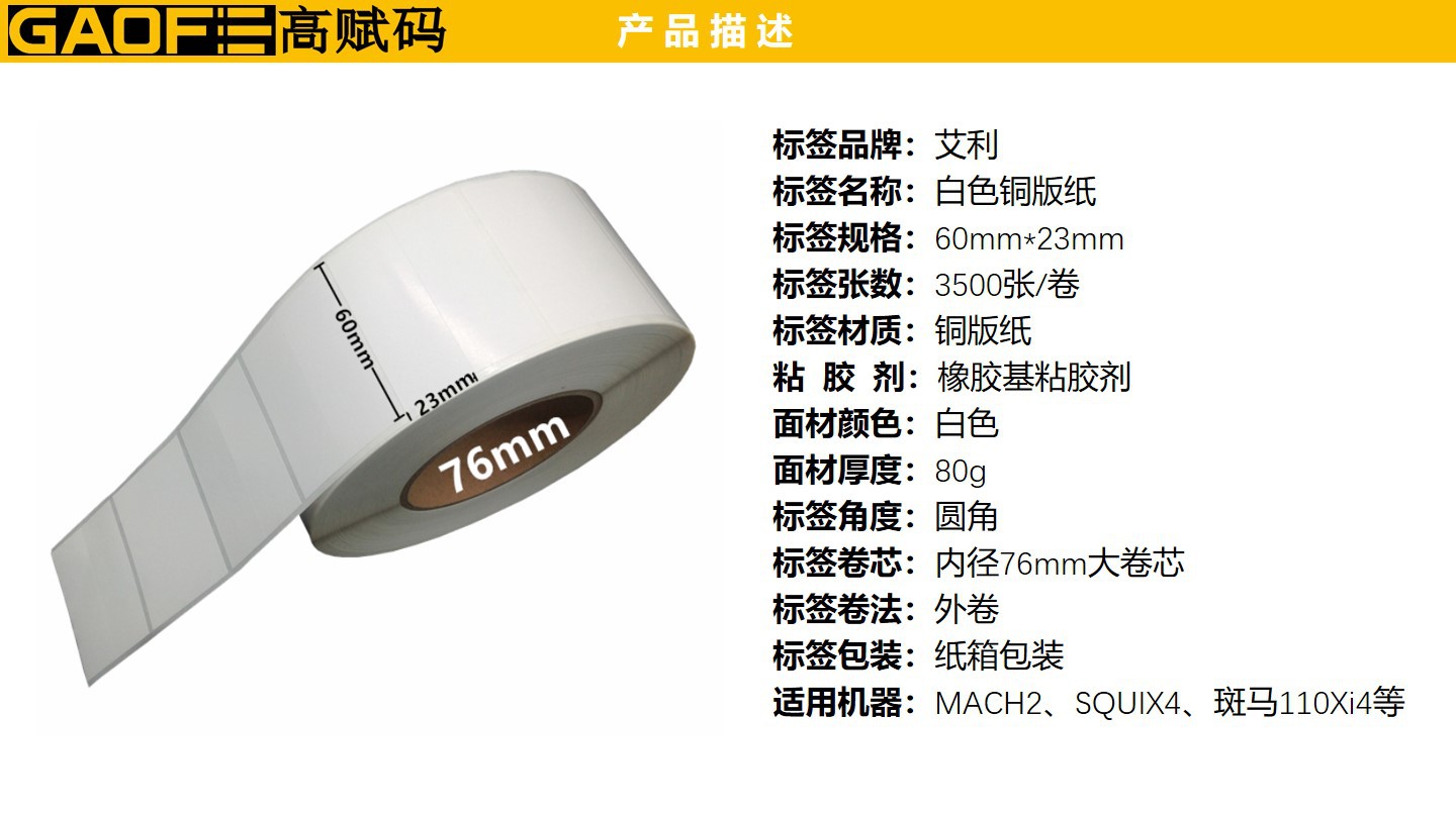 60mm*23mm 不干膠標(biāo)簽紙 5209銅版紙標(biāo)簽 價(jià)格標(biāo)簽紙 貼紙-高賦碼