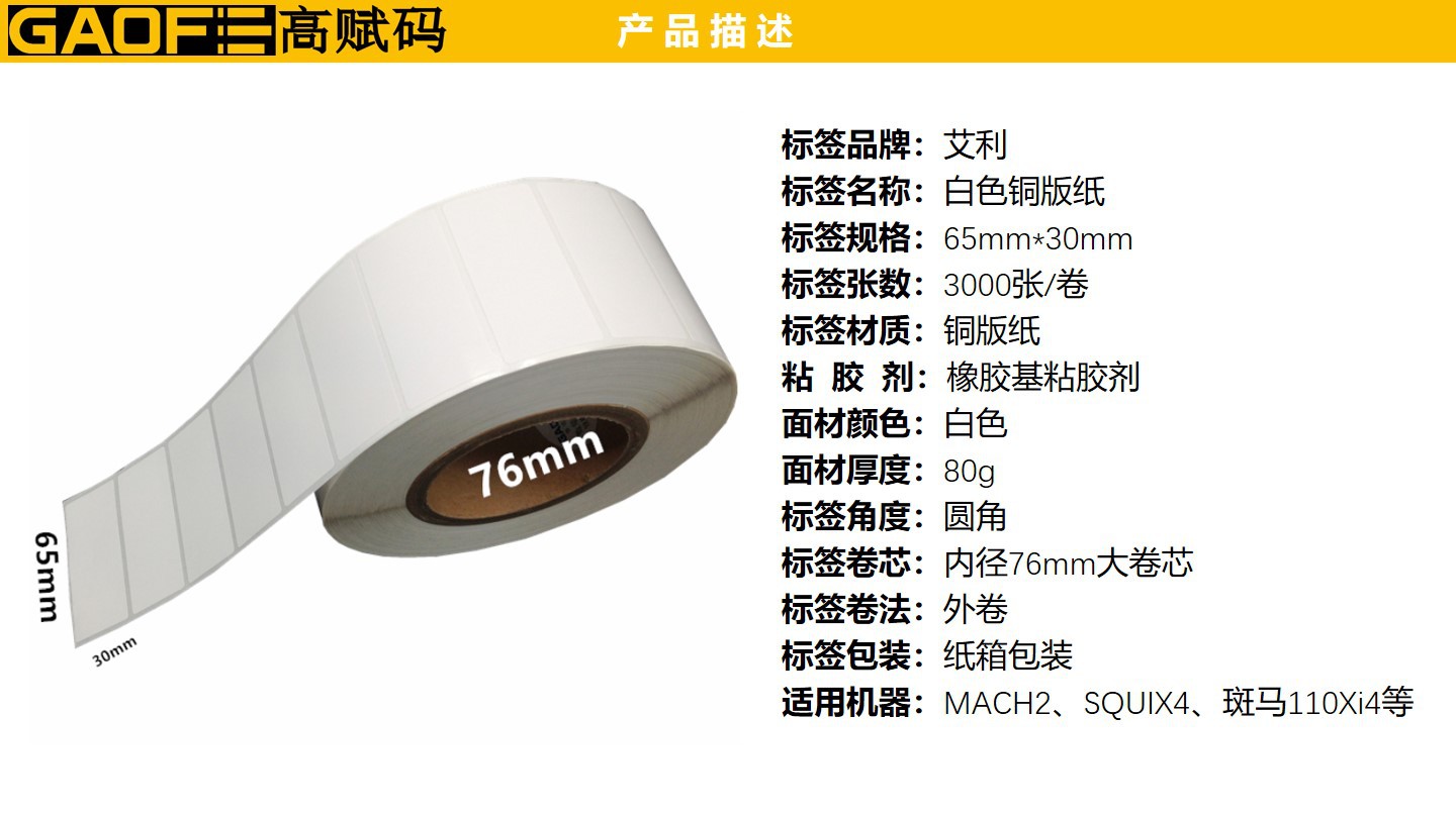5209不干膠銅版紙 65mm*30mm 強粘性標簽 出貨銅版紙標簽-高賦碼