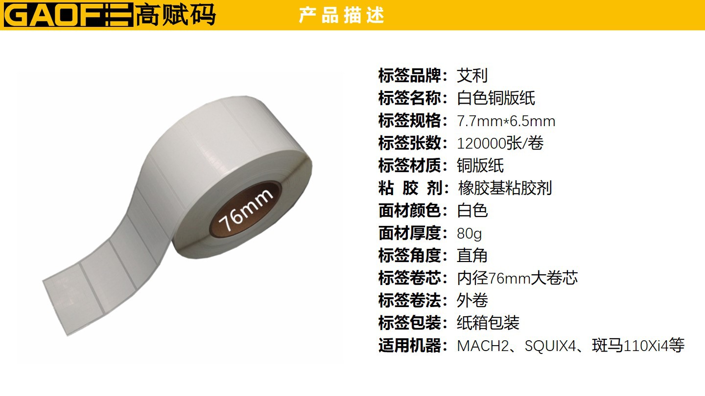 強粘性標簽7.7mm*6.5mm 5209不干膠銅版紙 出貨銅版紙標簽-高賦碼