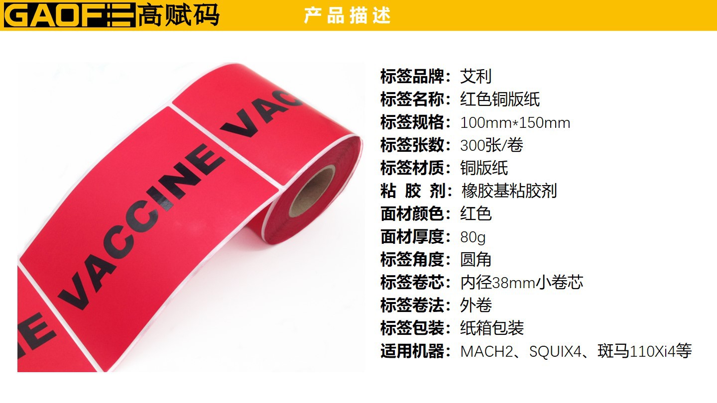 100mm*150mm紅色印刷標簽 強粘性 5209銅版紙 出貨紙標簽 高賦碼