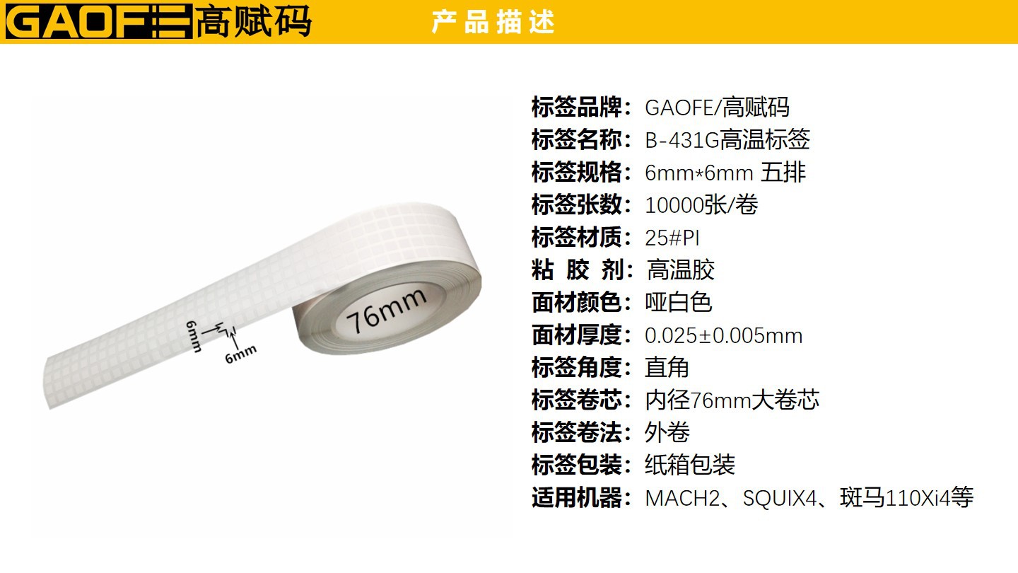 25#二維碼耐高溫標簽 B-431G 6mm*6mm PCB板300度高溫標簽-高賦碼