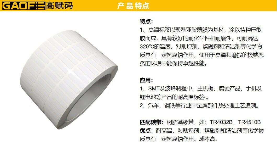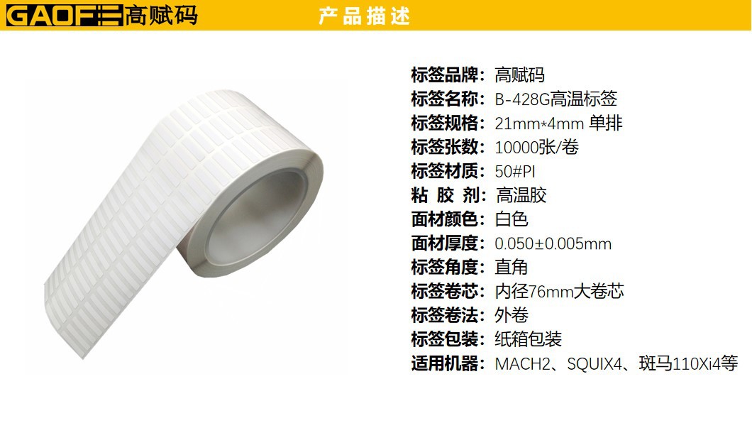 50#耐高溫啞面PI B-428G 21mm*4mm 高溫標簽 電子行業-高賦碼