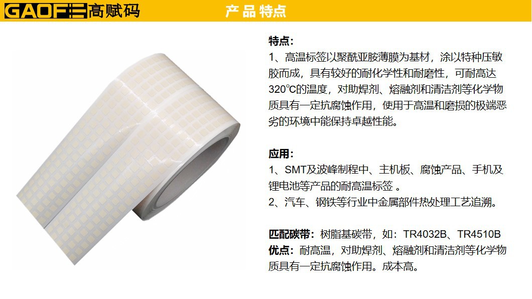 50#耐高溫啞面PI B-428G 21mm*4mm 高溫標簽 電子行業(yè)-高賦碼