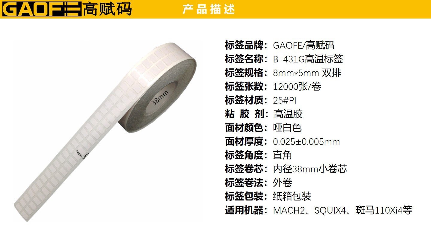 耐300度高溫標簽 B-431G 8mm*5mm 不干膠高溫標簽 SMT標簽-高賦碼
