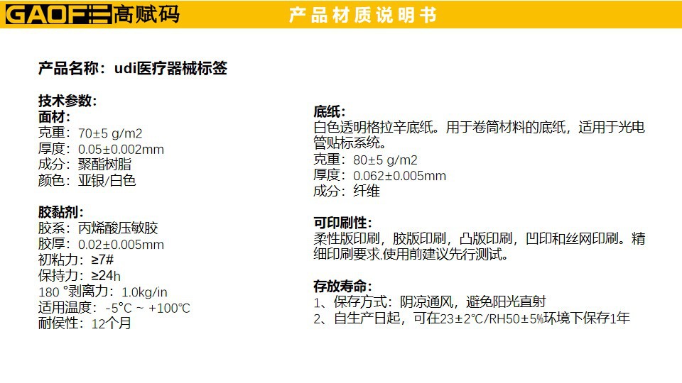 udi醫療器械標簽 彩色打印機專用 定制打印 高賦碼