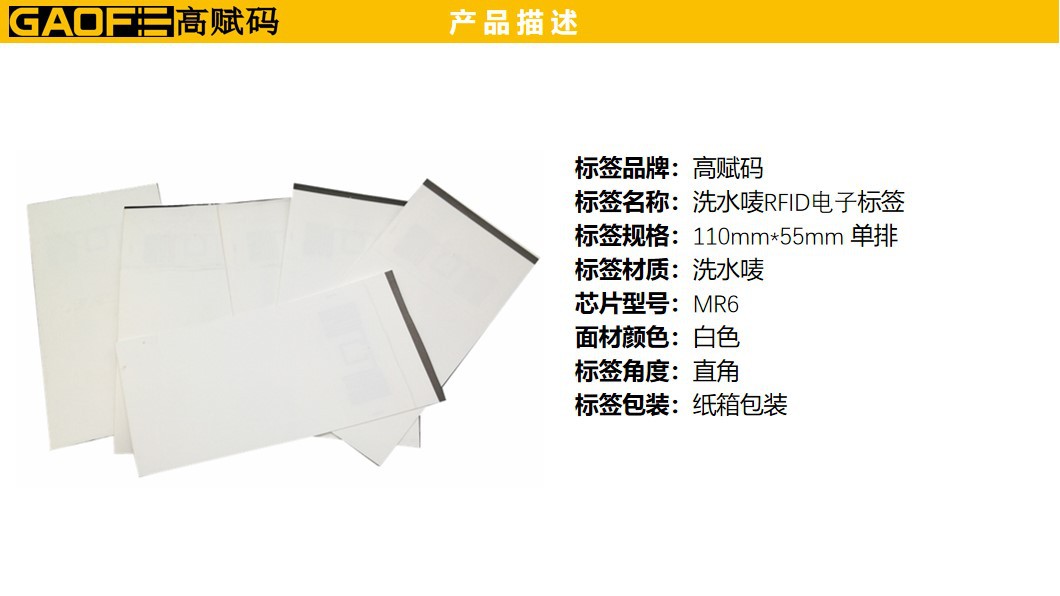 洗水嘜RFID標簽 MR6 110MMx55MM 洗水嘜電子標簽 高賦碼