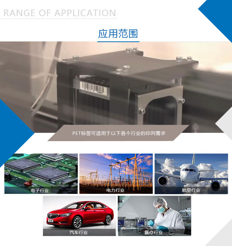 PET標(biāo)簽聚酰亞胺薄膜為基材,涂以特種壓敏膠而成,具有較好的耐化學(xué)性和耐磨性,耐溫范圍200℃~600℃,對(duì)助焊劑、熔融劑和清潔劑等化學(xué)物質(zhì)具有抗腐蝕作用,使用于高溫和磨損的極端惡劣的環(huán)境中能保持原本性能。它是專為印刷電路板用字符或條形碼標(biāo)簽而設(shè)計(jì),因?yàn)樗梢越?jīng)受生產(chǎn)印刷電路板過(guò)程中所面臨的焊接劑、熔融劑等的侵蝕。目前厚度主要是25um、50um兩種。常用的顏色是黑色和白色 。PET標(biāo)簽廣泛地應(yīng)用于眾多電子產(chǎn)品的SMT及波峰制程中、主機(jī)板、腐蝕產(chǎn)品、手機(jī)及鋰電池等產(chǎn)品的PCB板高溫標(biāo)簽。