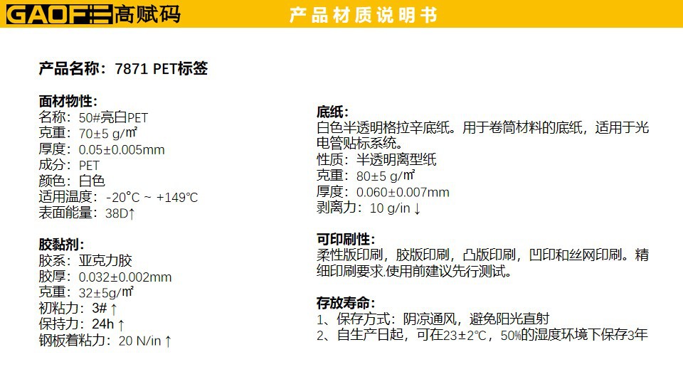 產品名稱:7871 PET標簽