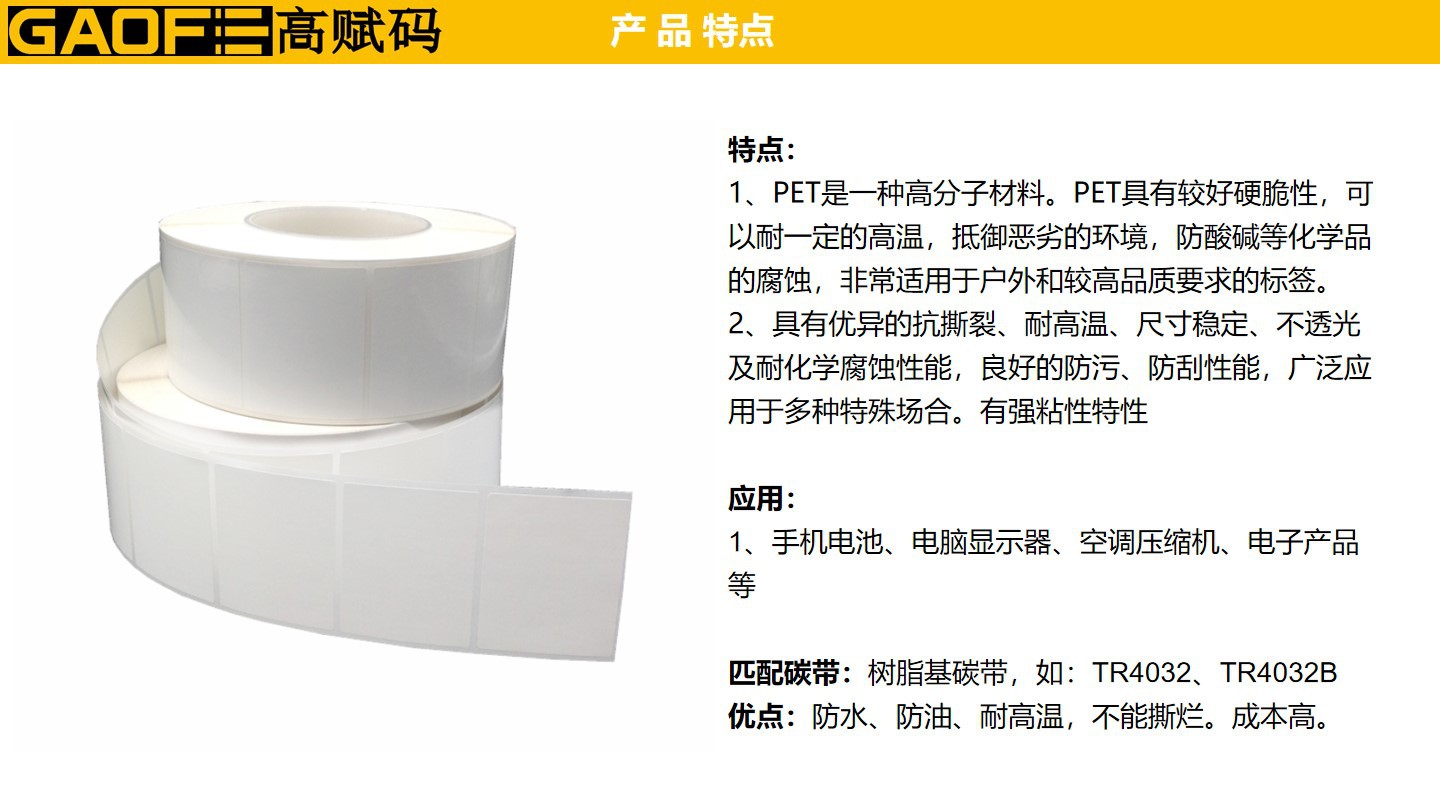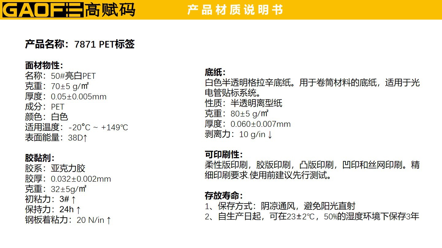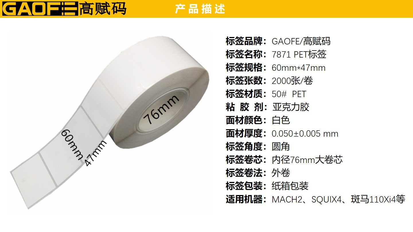 60mm*47mm強粘PET貼紙 電子標簽 7871 超粘不干膠PET標簽-高賦碼