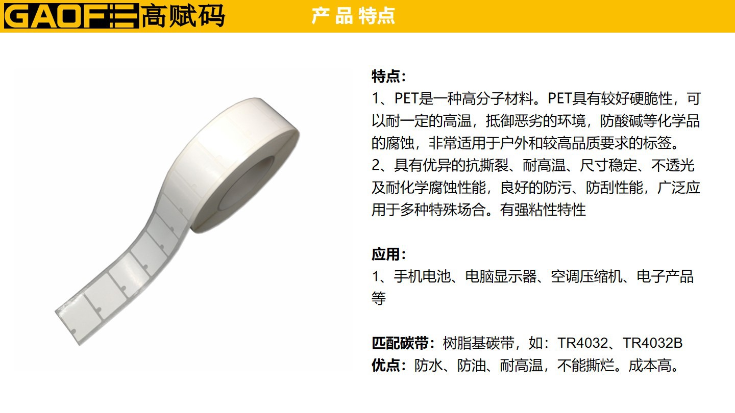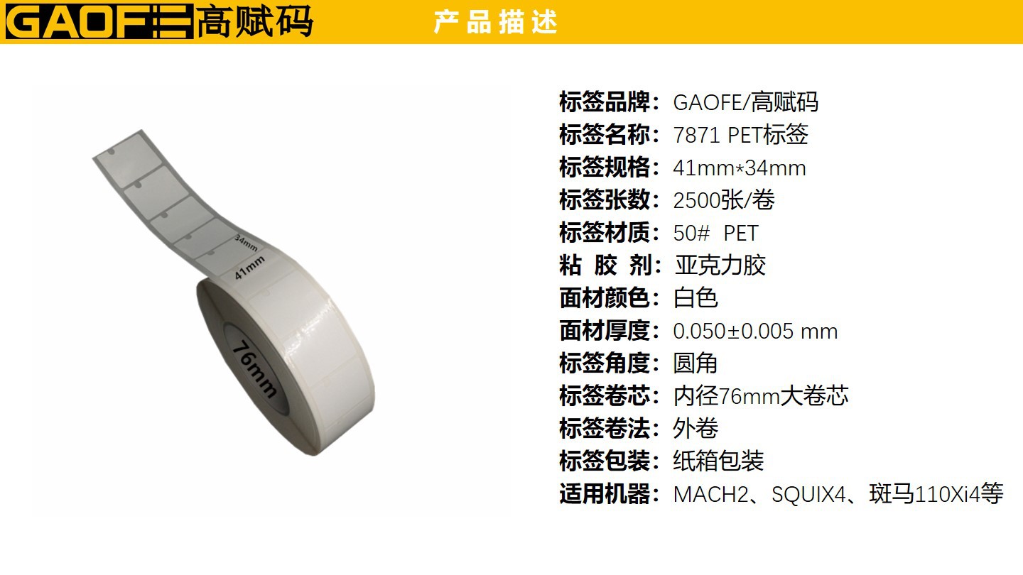 強粘PET貼紙 41mm*34mm PET標簽 7871 超粘不干膠PET標簽-高賦碼