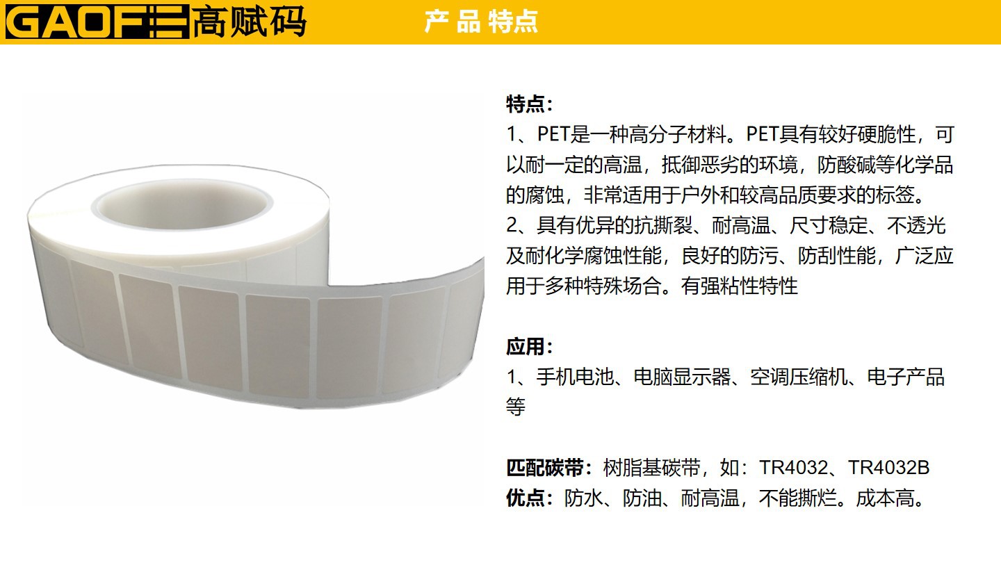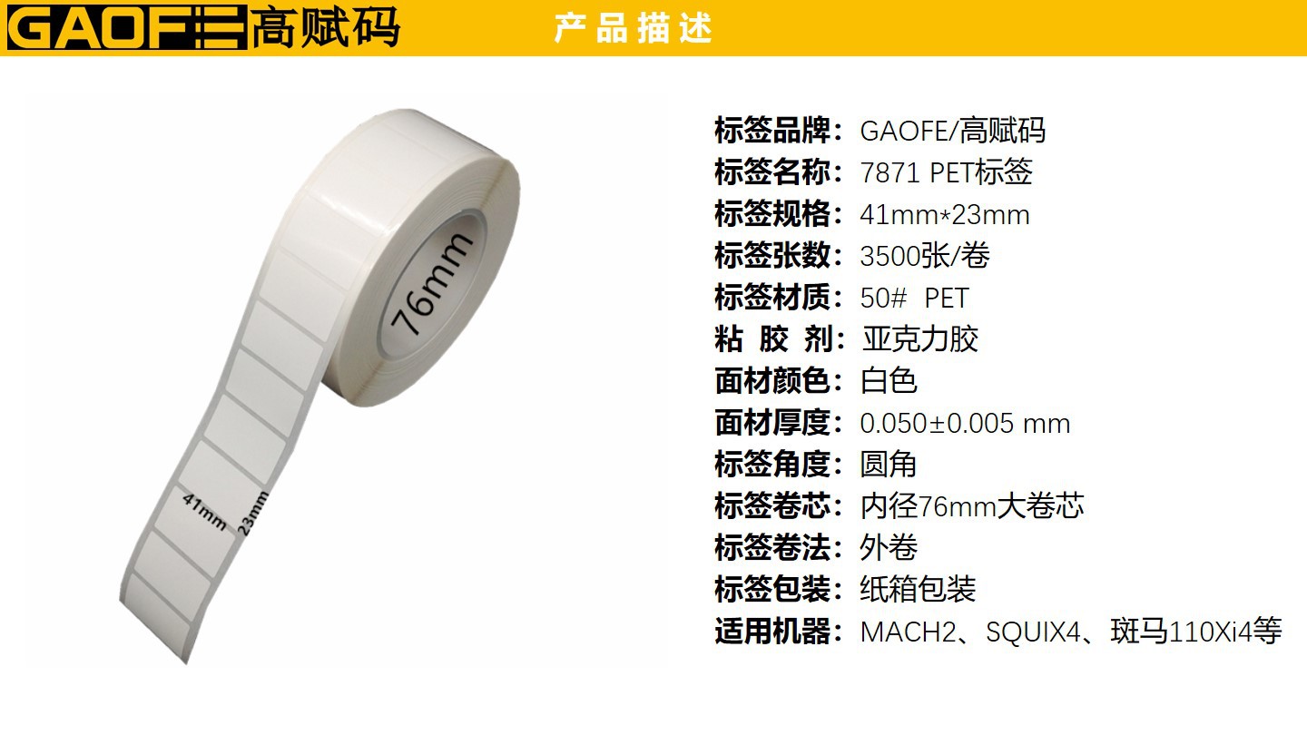 7871 超粘不干膠PET標簽 強粘PET貼紙 41mm*23mm PET標簽-高賦碼