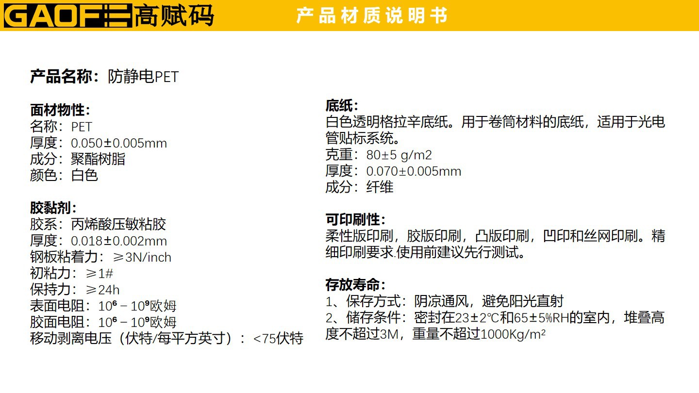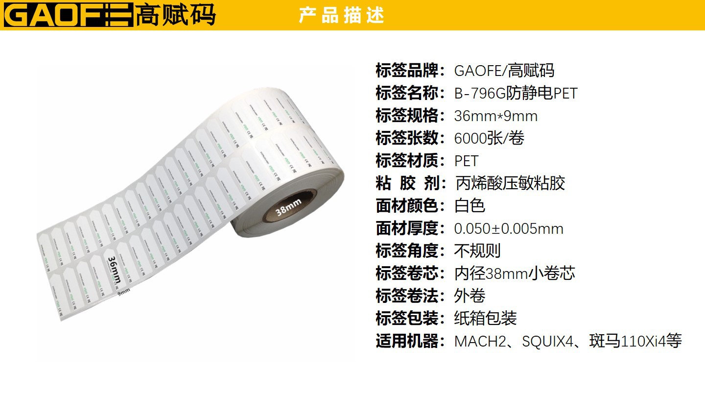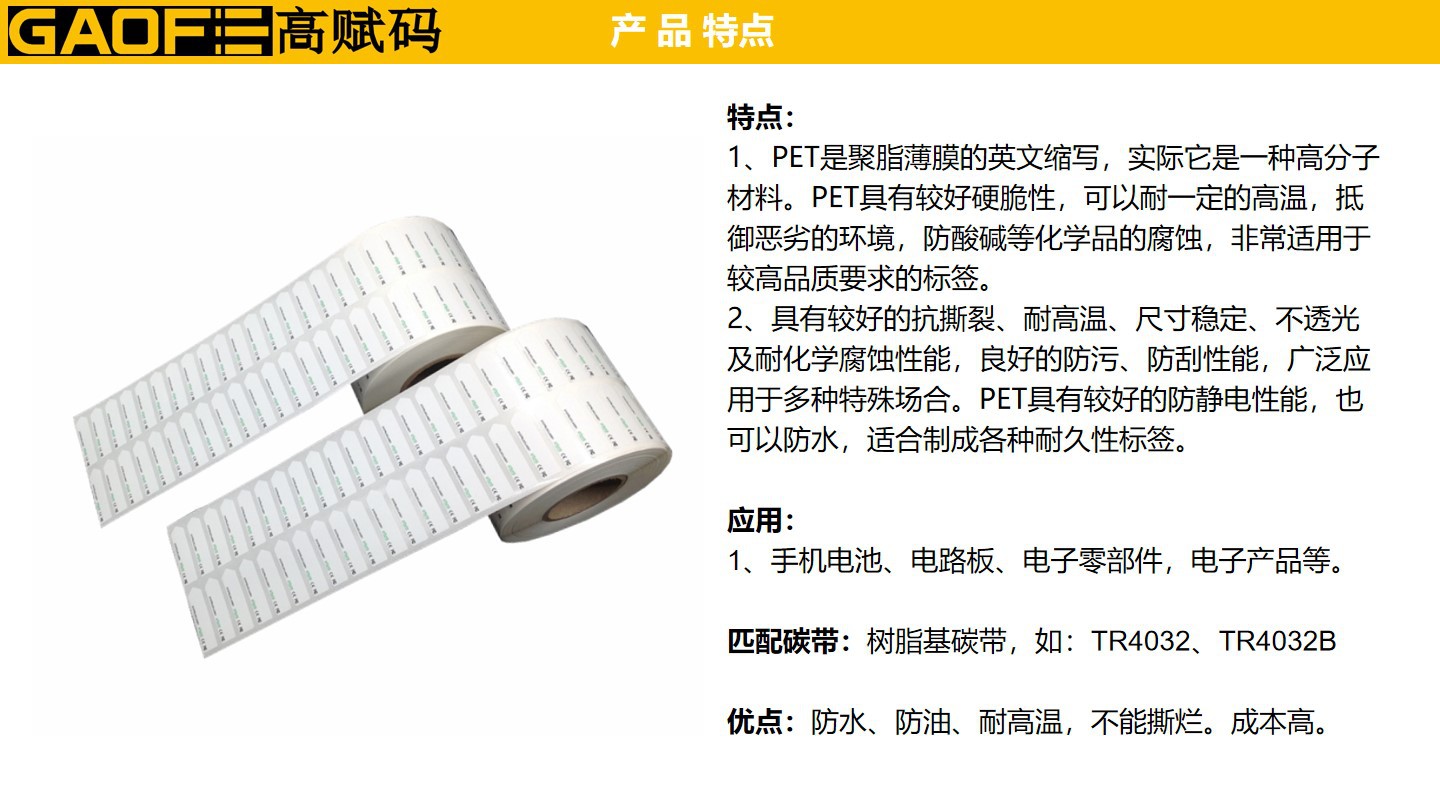 防靜電PET標簽 36mm*9mm 雙色印刷防靜電PET標簽 電池標簽-高賦碼
