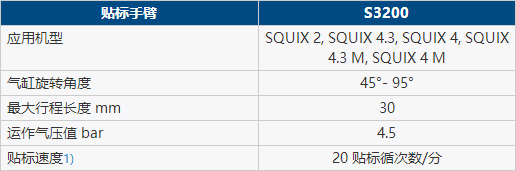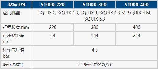 使用壽命、預先剝離功能、氣壓計、穩定度和支撐氣流等說明請參照貼標手臂 S1000。