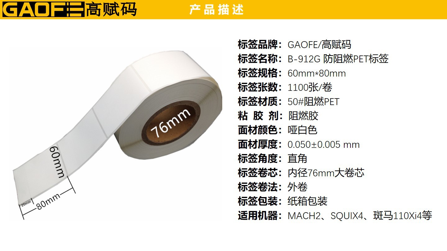 防阻燃標簽B-912G 80mm*(60+20)mm PCB板防火標簽 條碼標簽高賦碼