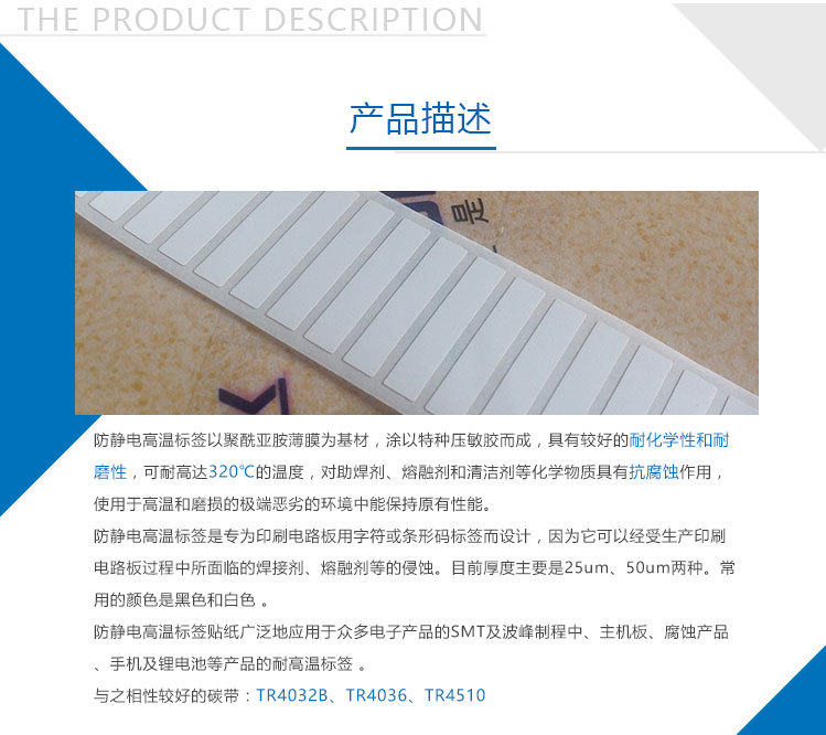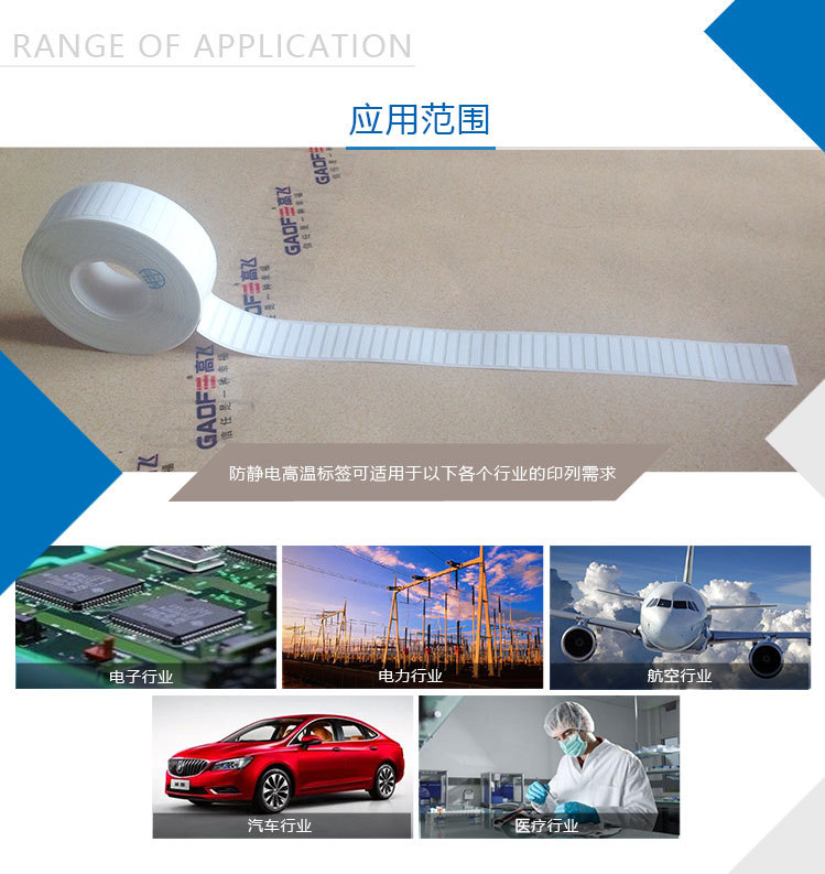 用途:防靜電高溫標簽貼標
