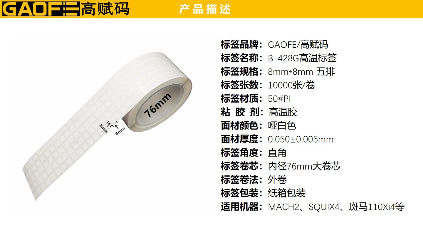 耐300度高溫貼紙 B-428G 8mm*8mm 二維碼高溫標簽 SMT標簽-高賦碼