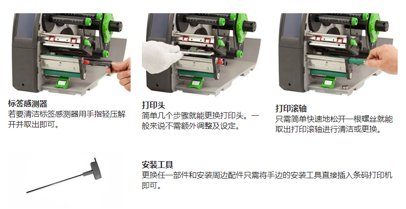 條碼打印機的機構料件皆以高品質的材料制作且在外型及功能上達到完美的協調性。多元的周邊配件和軟件可提供客制化的解決方案。