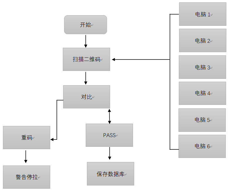 2、掃碼出現(xiàn)重碼那臺電腦會彈出警告,并停止錄入工作。并發(fā)出指令信號給到plc停止命令立即停拉。