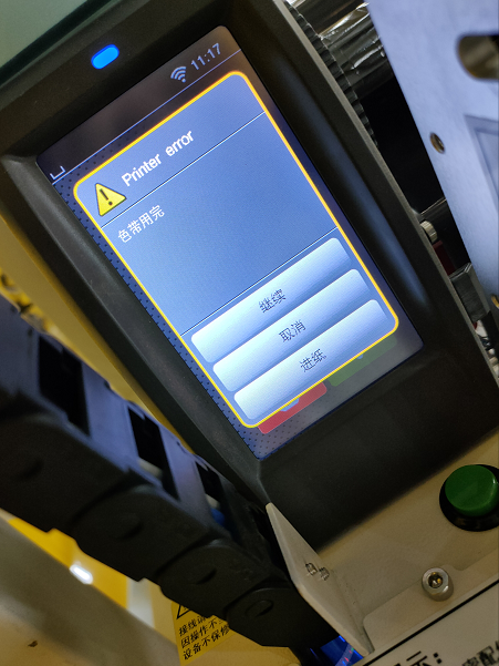 客戶: 打印機型號是CAB SQUIX4帶手臂,打印出一截并且提示色帶用完報錯