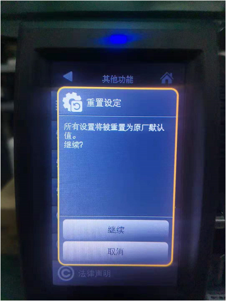 3.選繼續,等待一下,恢復出廠設置完成后,界面會變成英文: |