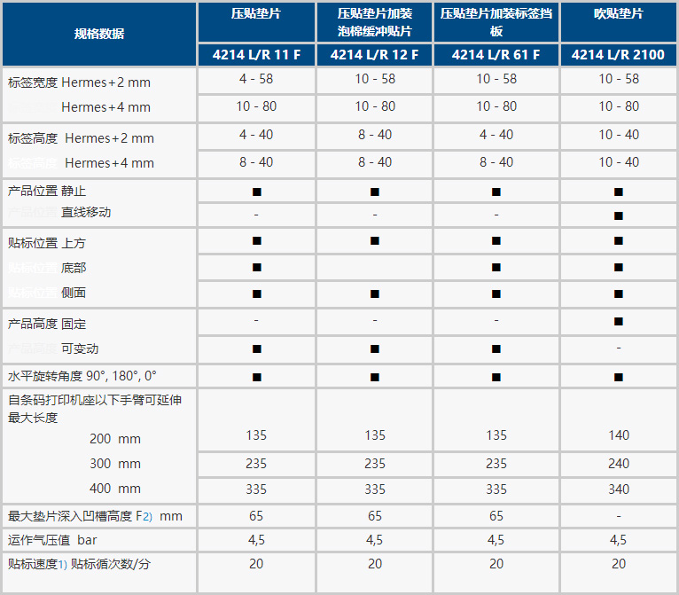 標簽在打印同時就會由墊片所吸附。旋轉氣缸會水平轉動最大 至 180° 到貼標位置上。氣缸會將標簽放置于產品上。