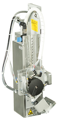 針對脆弱的產(chǎn)品表面或行進(jìn)中的產(chǎn)品。標(biāo) 簽可透過氣壓噴射于產(chǎn)品表面上完成吹 貼動作。可設(shè)定氣缸停止在離產(chǎn)品表面 5-10mm 之距離。