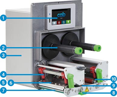 標簽剝離之后,下一張標簽會退回打印頭后方。借此確保標簽前緣仍可打印并防止殘膠因長時間等待而溢出。使用敏感材質(zhì)時,打印頭可抬起以避免碳帶起皺折。