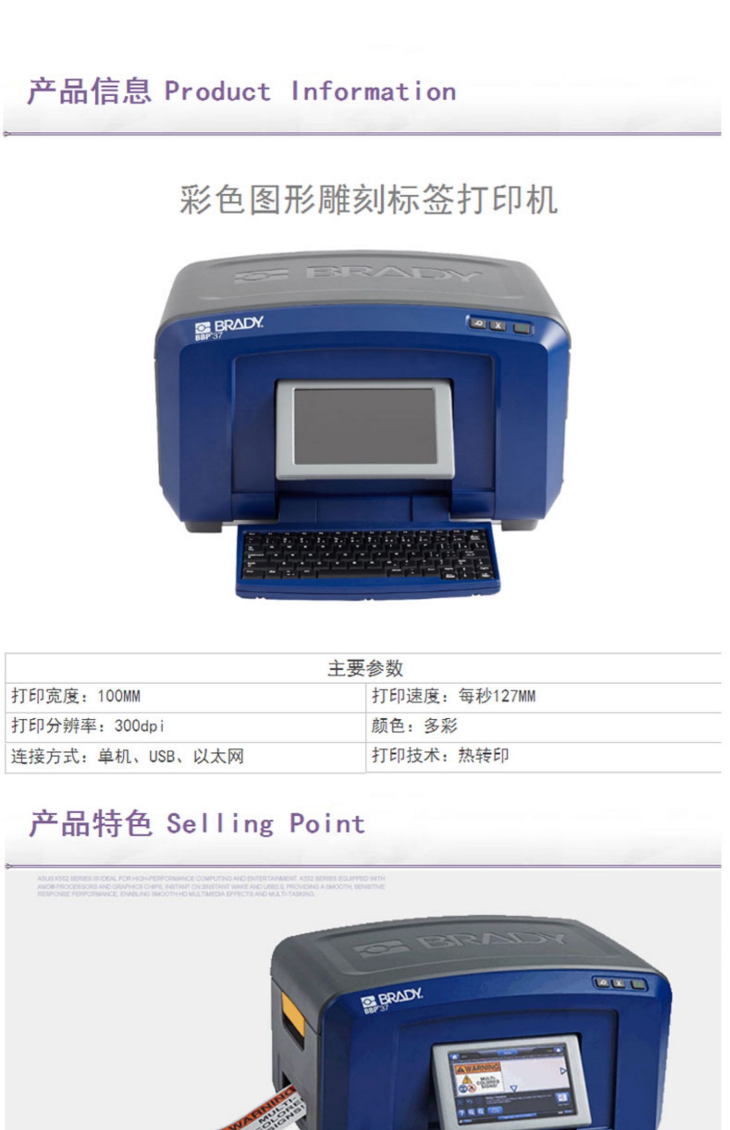 貝迪(BRADY)BBP37-BWS寬幅貝迪打印機 彩色加雕刻標識標簽打印機