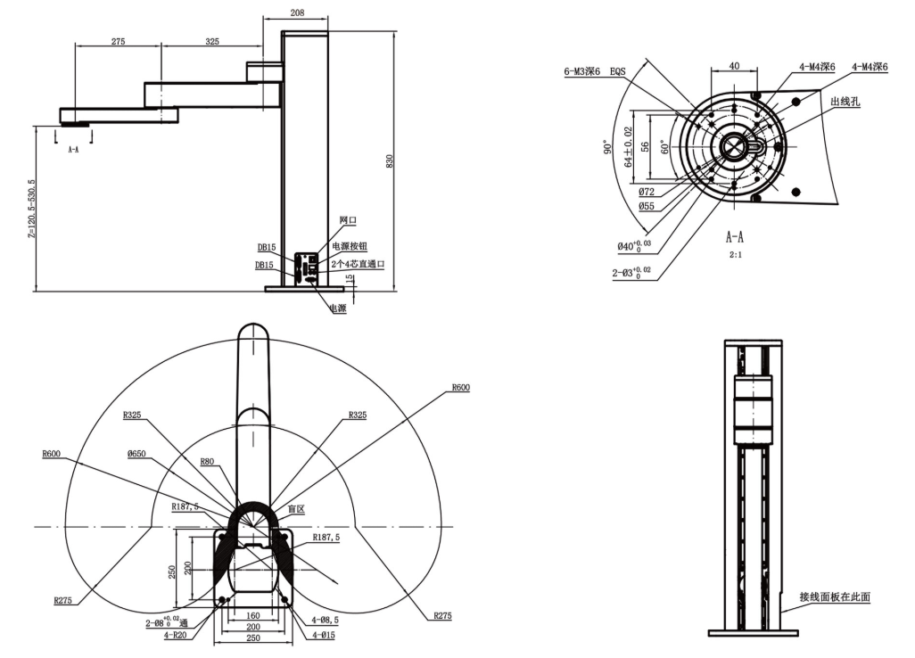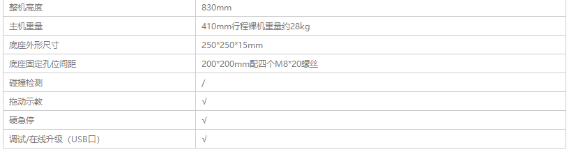 支持拖動示教、硬急停、調試/在線升級(USB口)